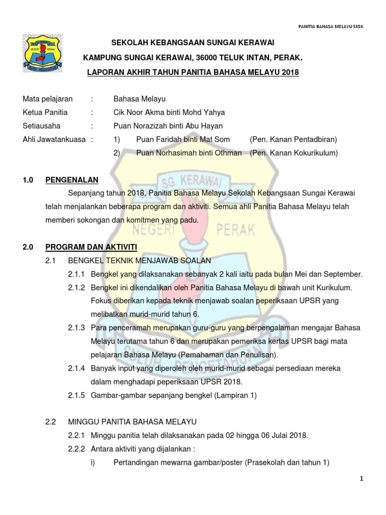 Laporan Akhir Tahun Panitia Bahasa Melayu Sksk 2018 Pdf